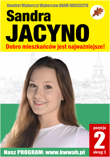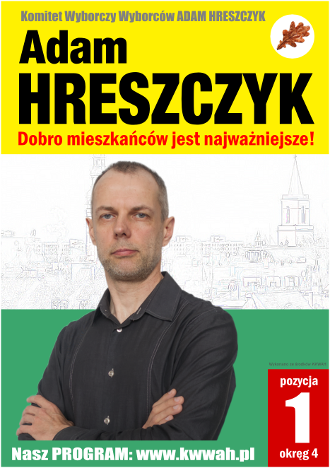 Zebrane uwagi: wrzucić nazwę komitetu z nr listy i nr okręgu; no i chyba drobnym drukiem pod lupą że wykonano ze środków KKWAH; no i może jeszcze gdzieś wrzucić adres strony ze słowem program; Wszyscy tez powinniśmy mieć ten sam wzór, dla rozpoznawalności.